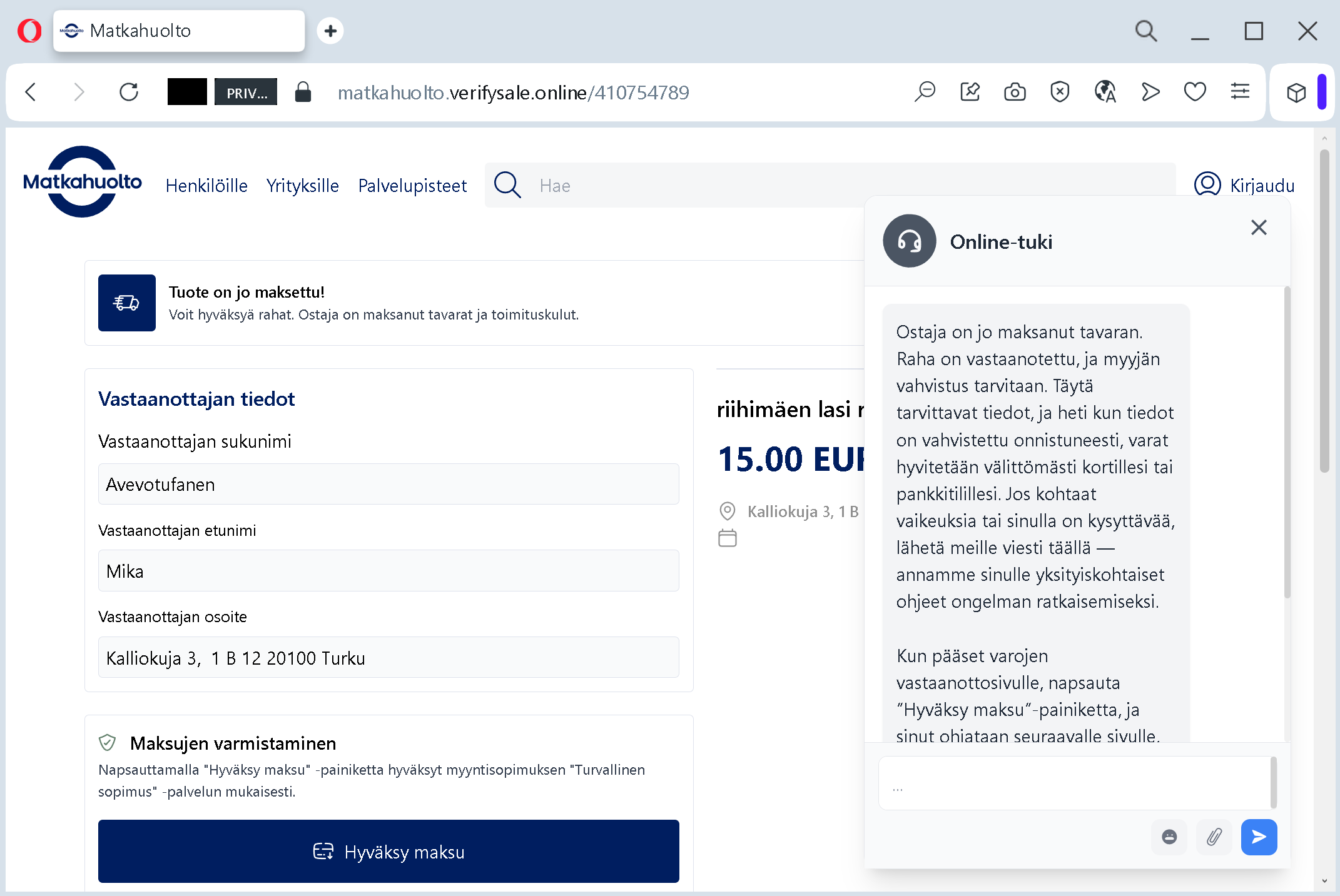 posti.fidirectly into your browser. - Never enter bank authentication codes on a site that is not your bank’s official website.