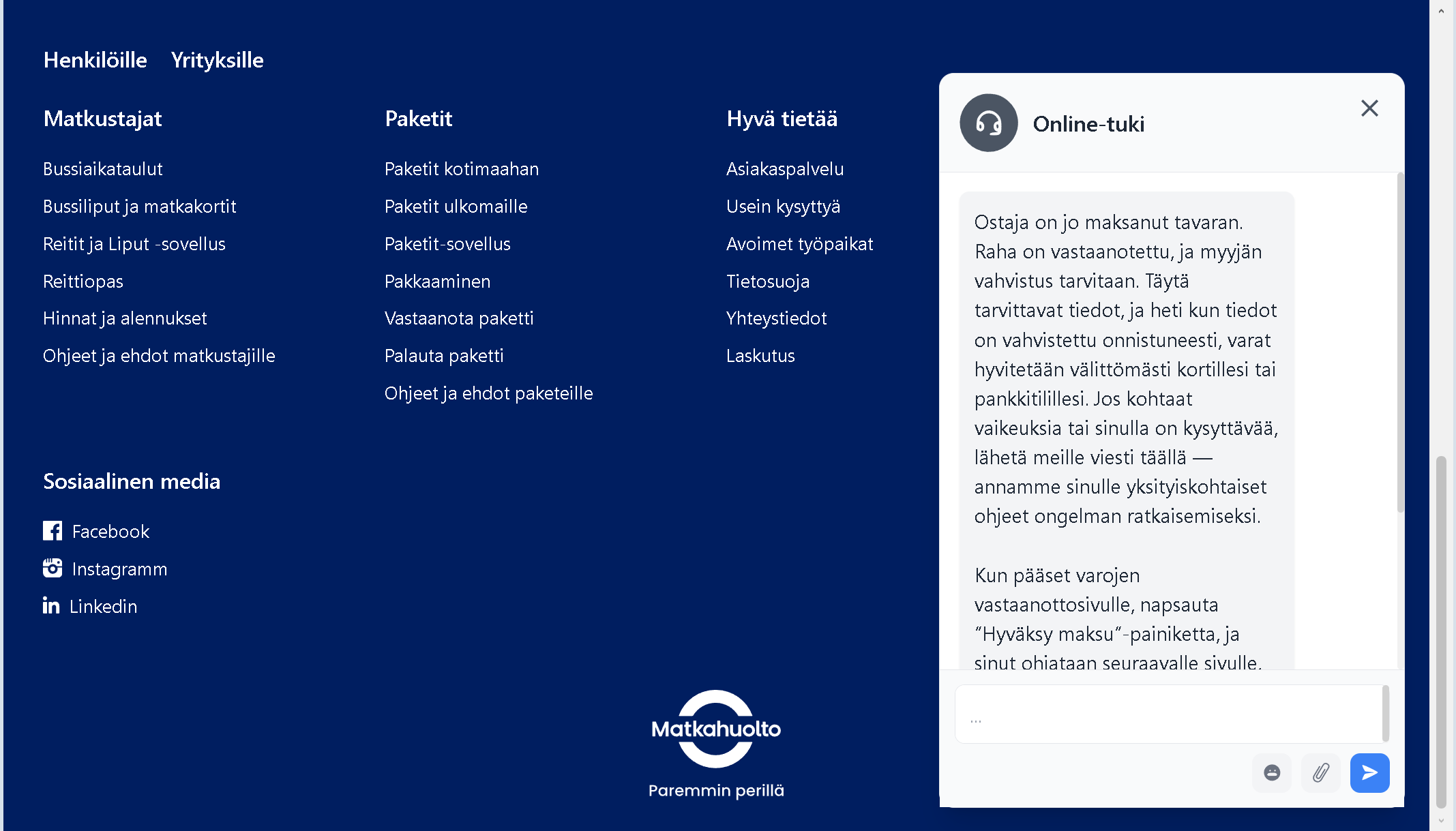 - Copied content: The pages use Posti’s logos, navigation menus, and social media links, but these are stolen from the real site.