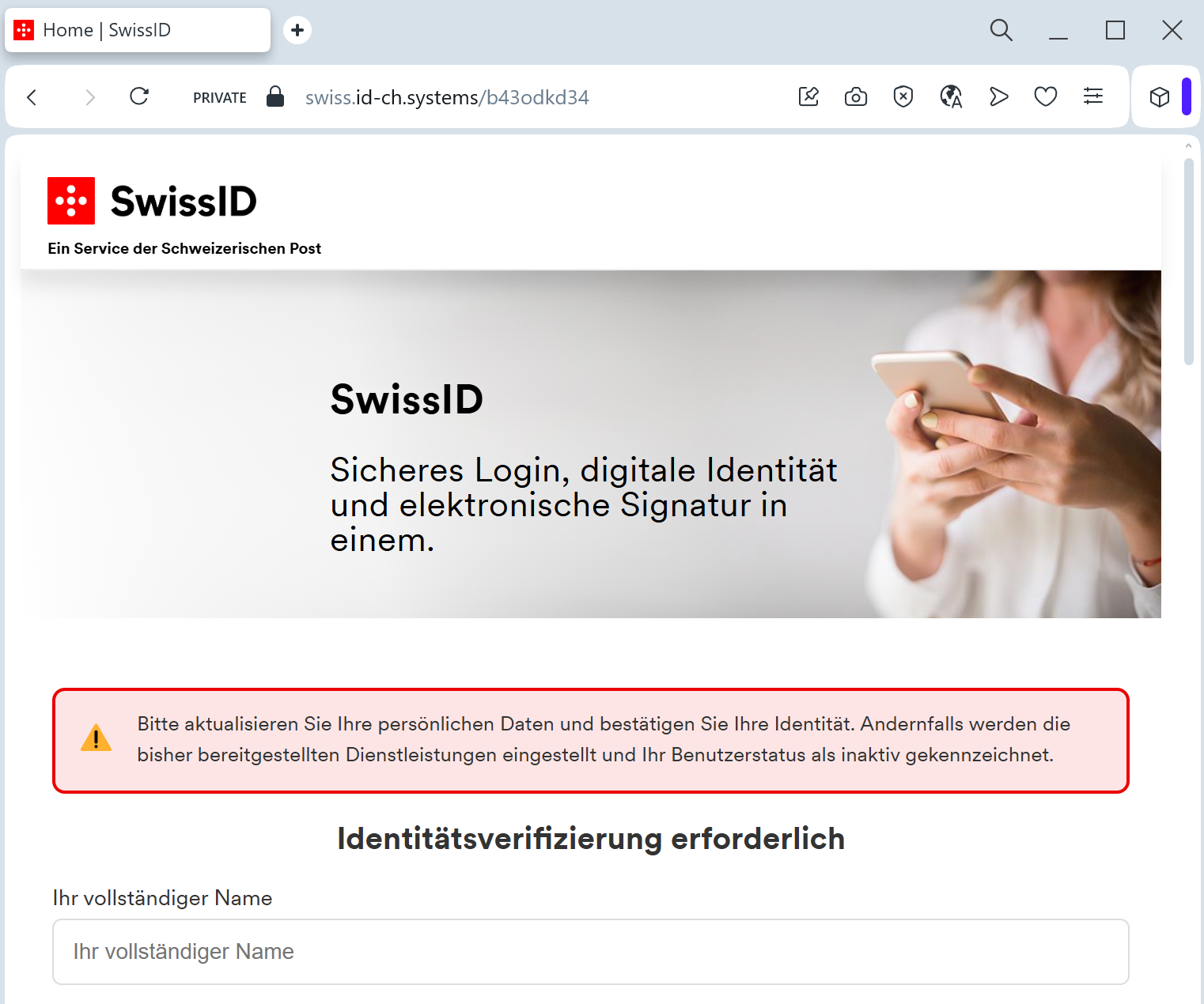 Swiss Post fake page detected