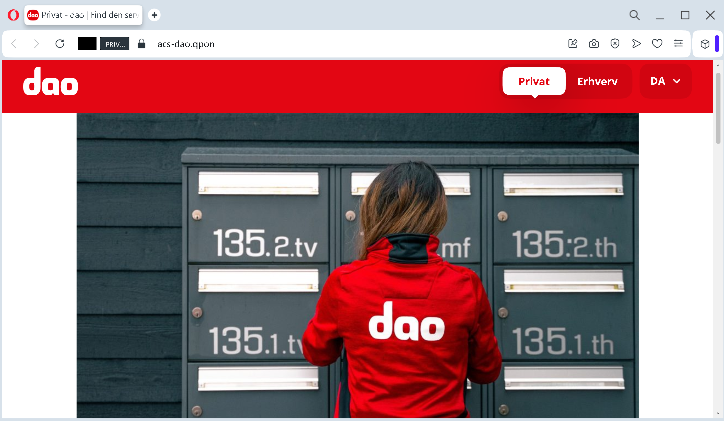 Suspicious URL: The pages are hosted on domains that are not dao.dk or the official dao website. The visible fragments (e.g., 135.2.tv, 135.1.tv) suggest a subdomain or odd URL structure.