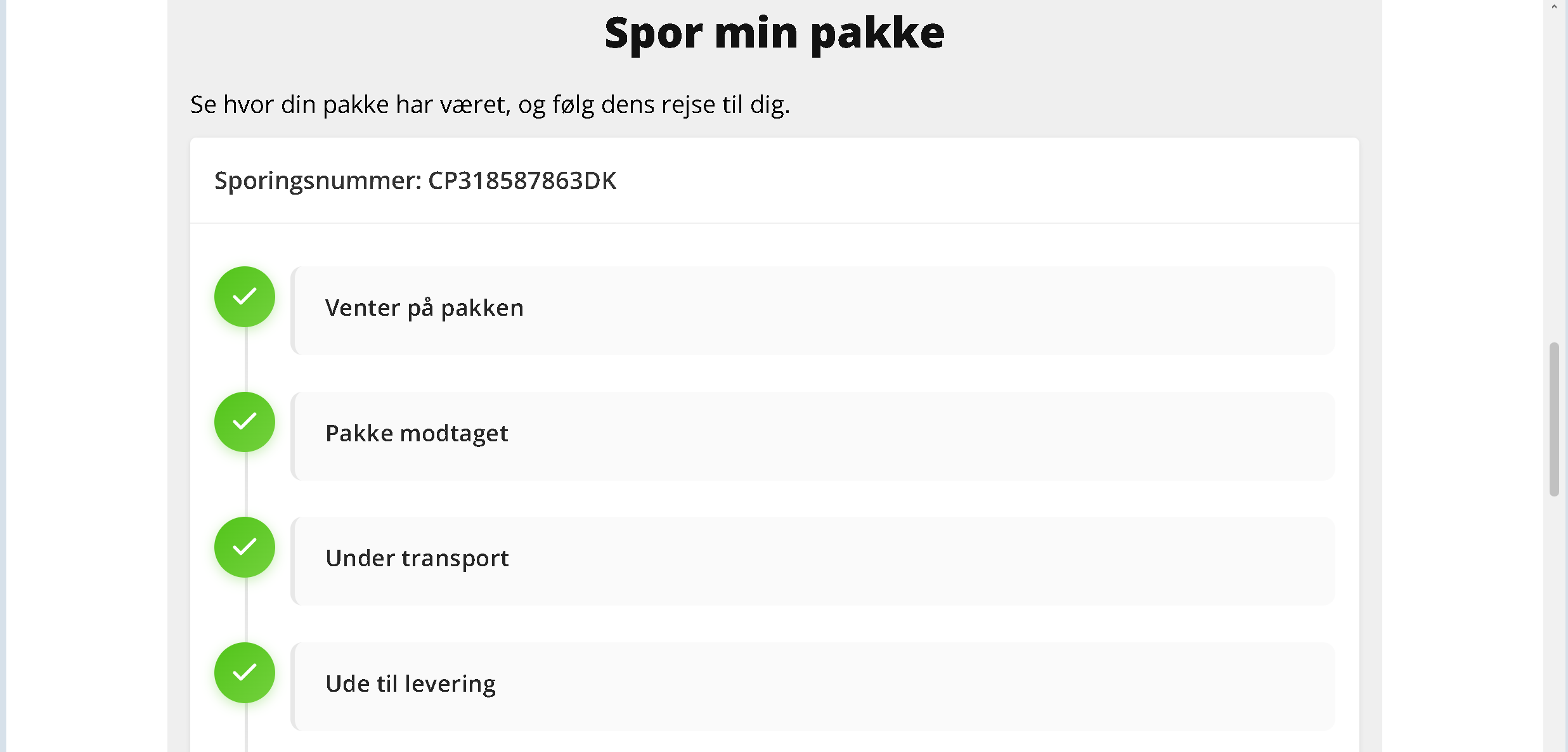 Always track packages by typing the official courier URL directly (e.g., dao.dk) and entering your real tracking number.