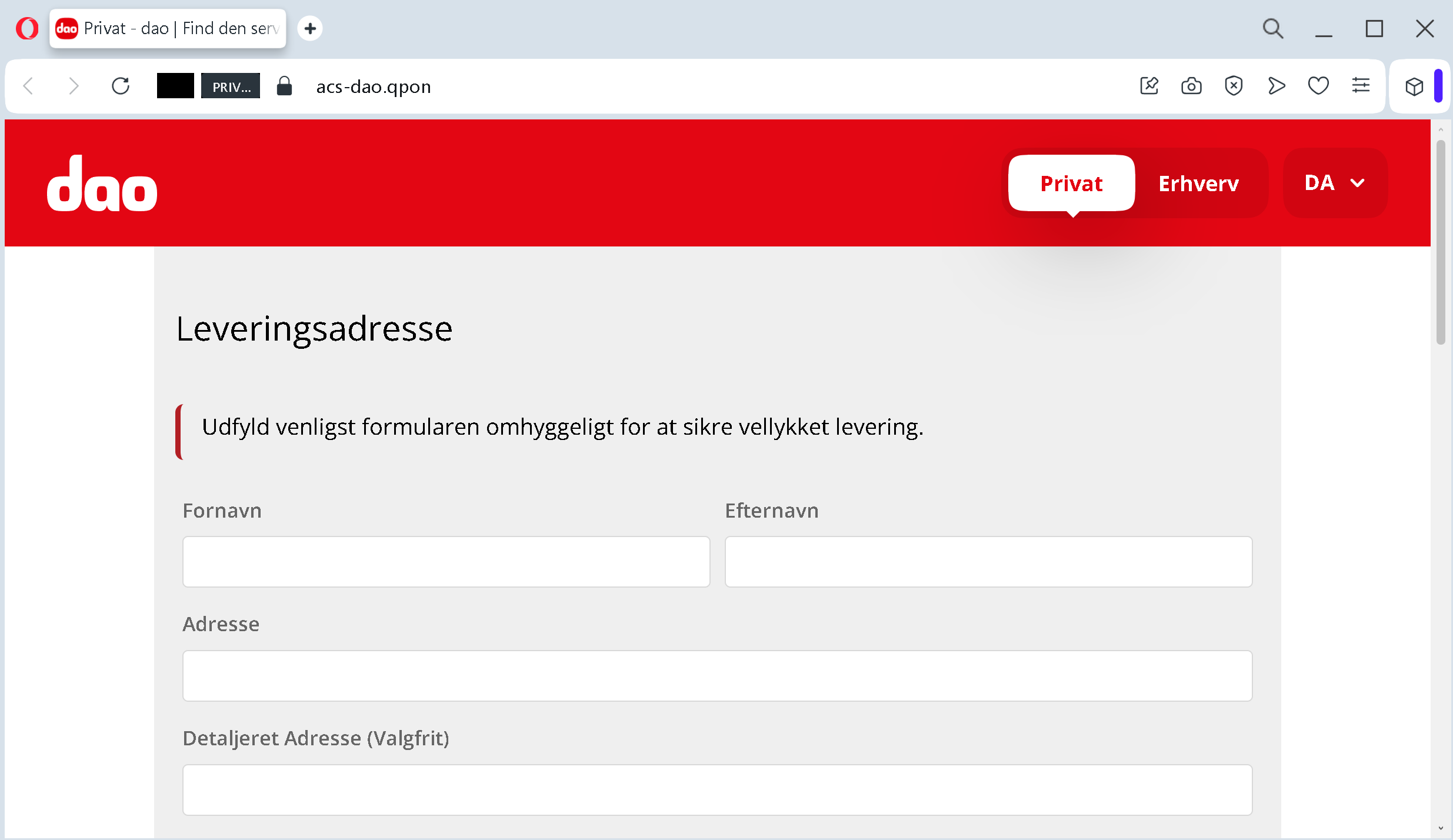 Check the URL carefully: Official dao domains end with dao.dk. Look for misspellings, extra words, or unusual top‑level domains (e.g., .tv, .th).