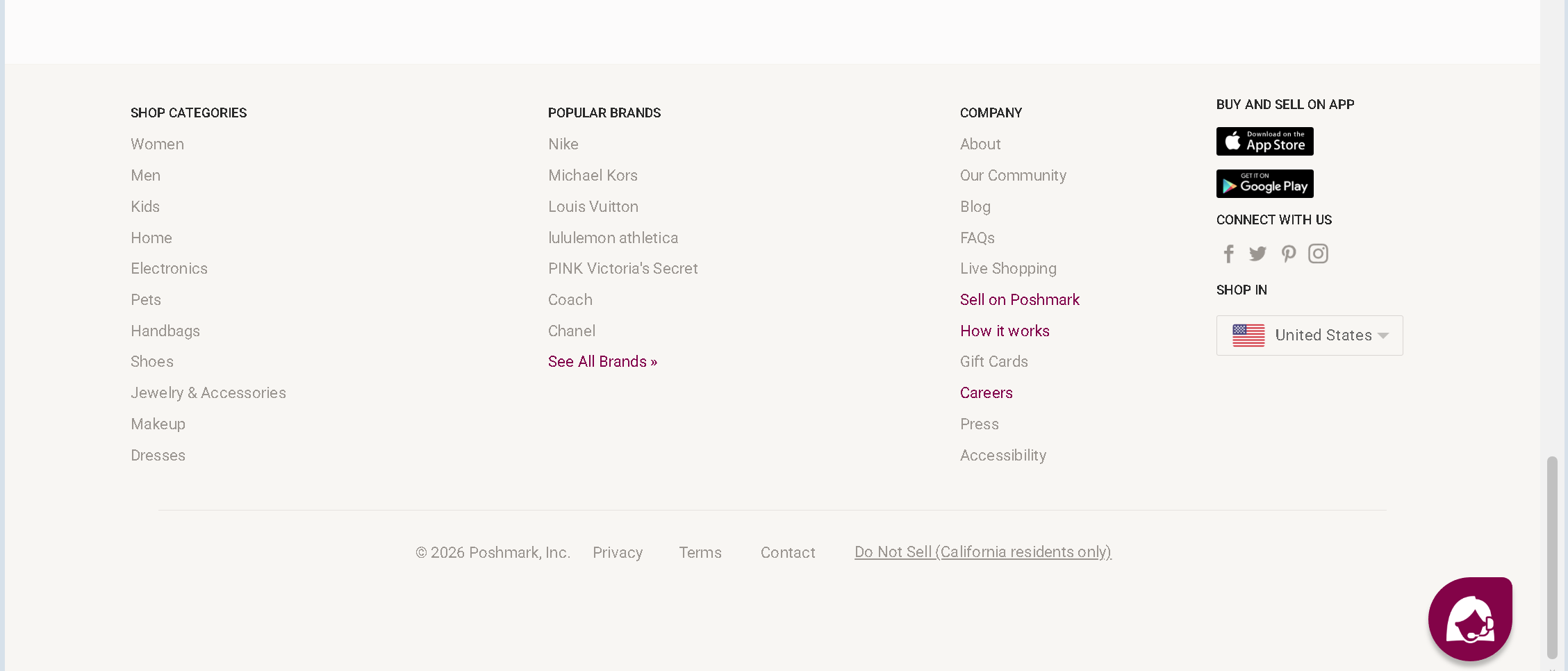 • Copied branding: The pages use Poshmark’s logos, categories, and footer links, but these are stolen from the real site.